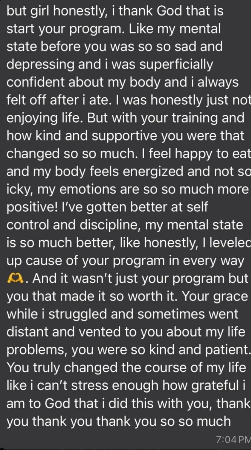 I got you girl! You have the option to join my 1:1 coaching where I am with you every step of the way in reaching your goals. This is the most personalized and premium offer I have. If this interests you, just send me a message.